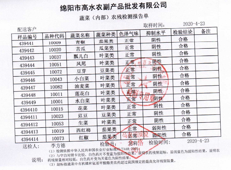 高农司农残检测报告单