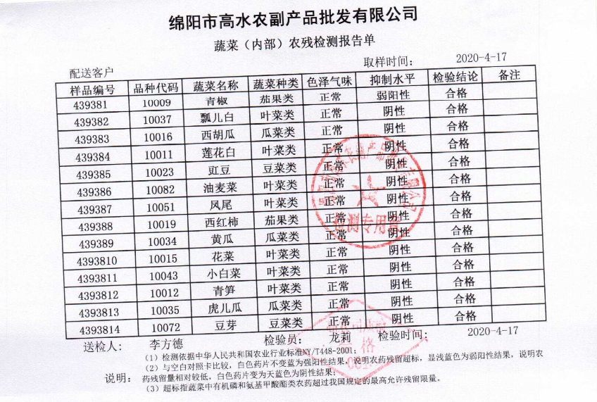 高农司农残检测报告单