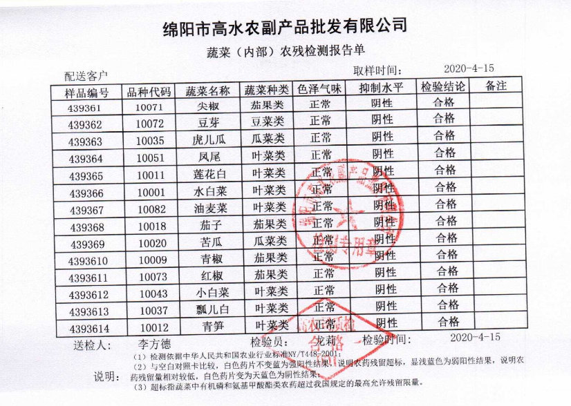 高农司农残检测报告单