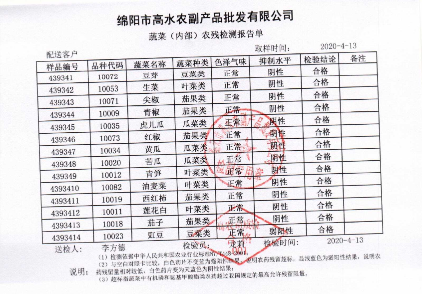 高农司农残检测报告单