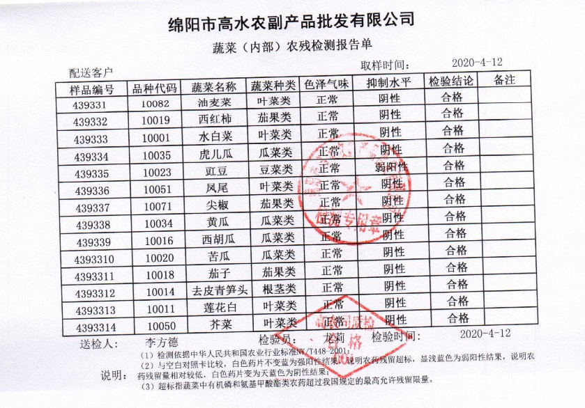 高农司农残检测报告单