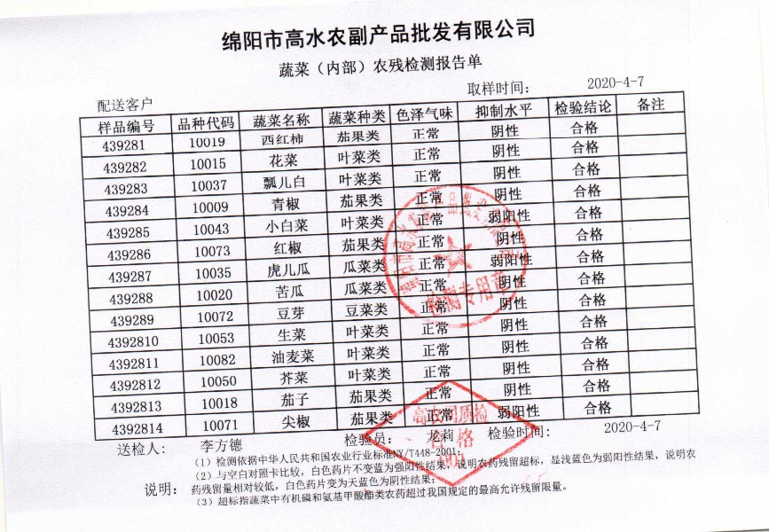 高农司农残检测报告单