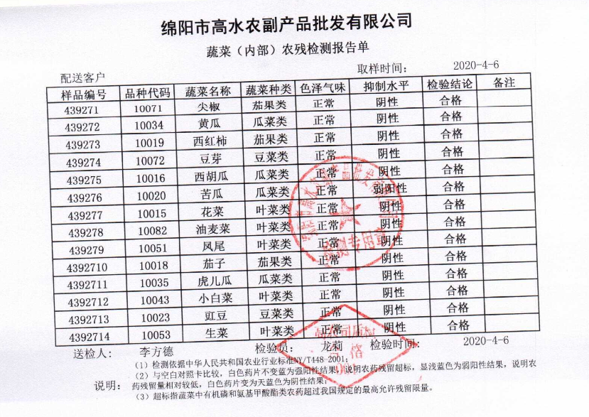 高农司农残检测报告单