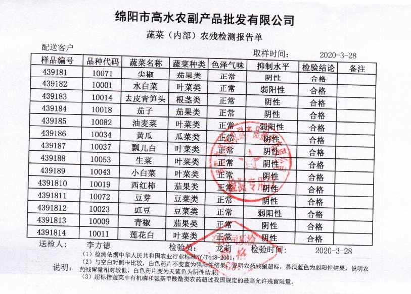 高农司农残检测报告单