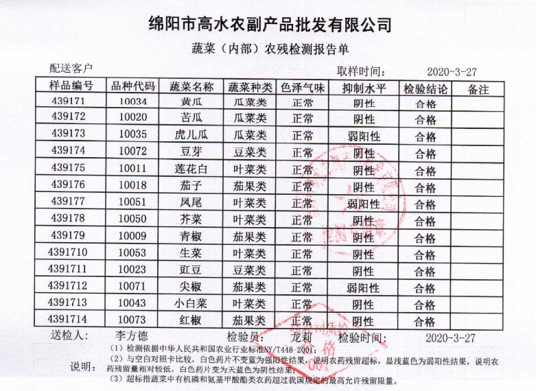 高农司农残检测报告单