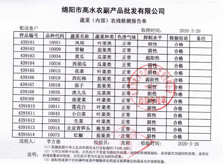 高农司农残检测报告单