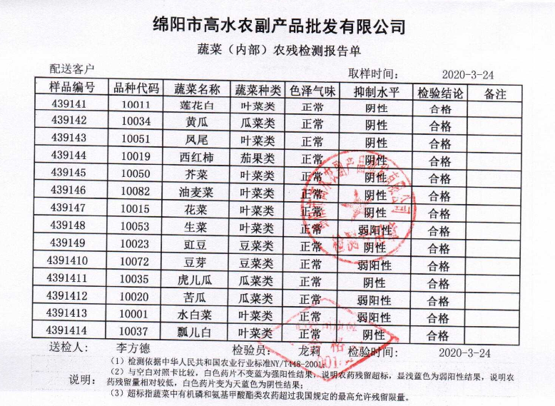 高农司农残检测报告单