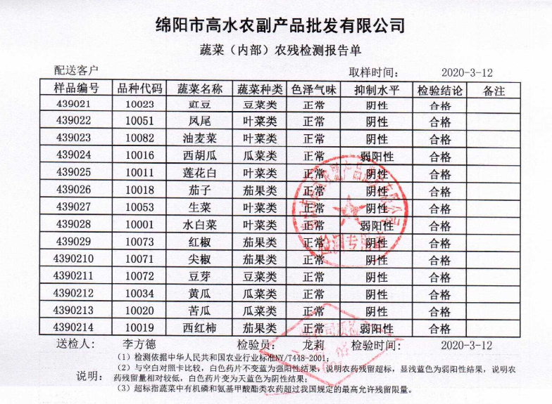 高农司农残检测报告单
