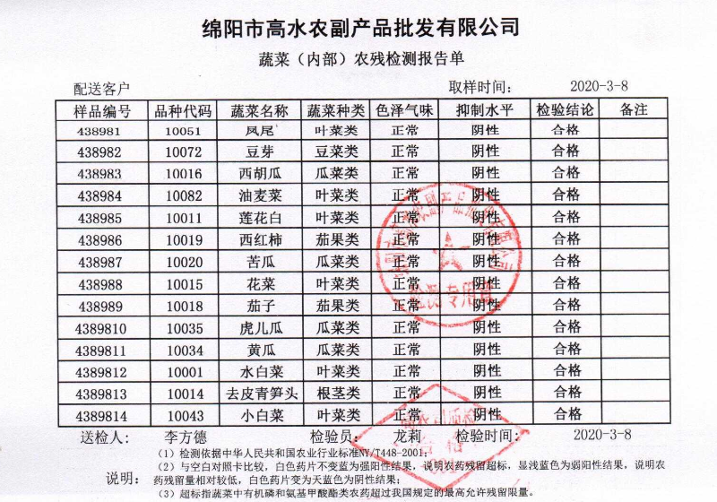 高农司农残检测报告单