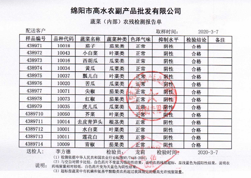高农司农残检测报告单