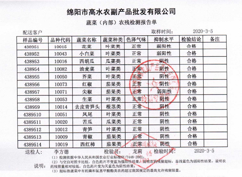 高农司农残检测报告单