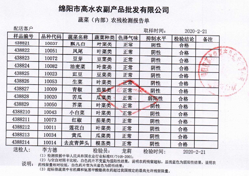高农司农残检测报告单