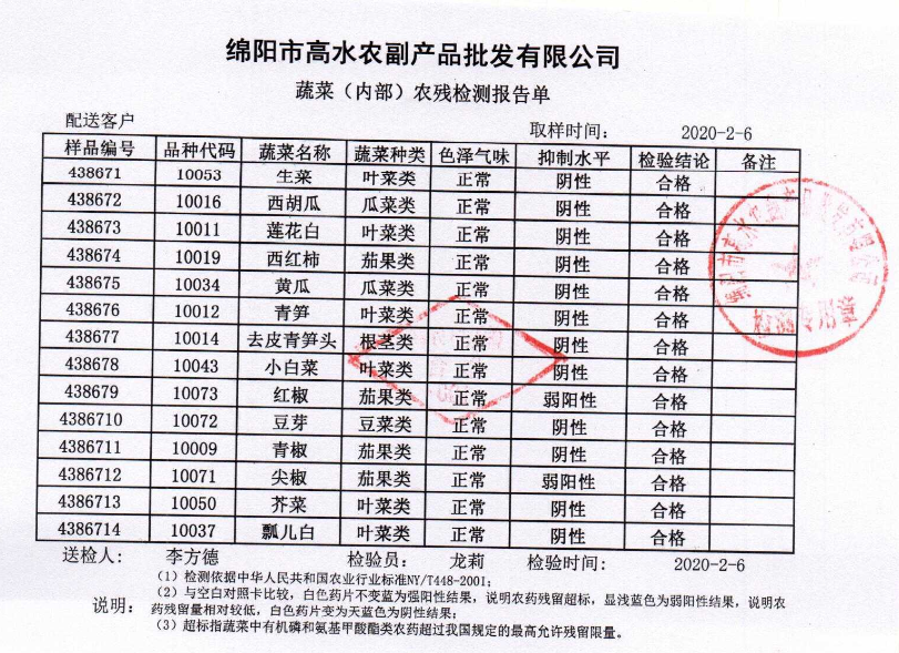 高农司农残检测报告单