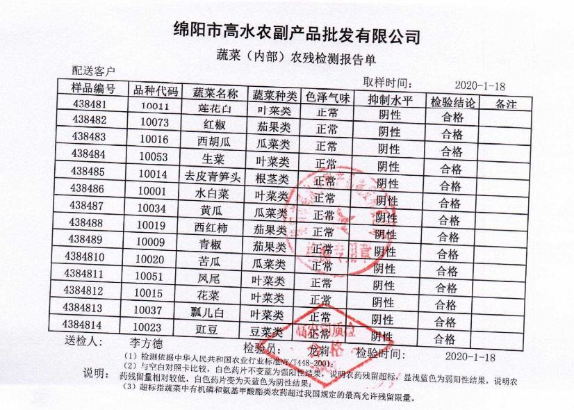 高农司农残检测报告单