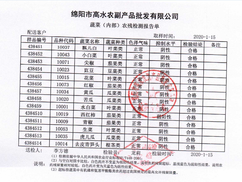高农司农残检测报告单