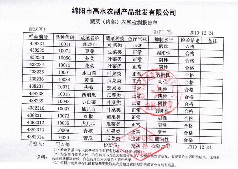 高农司农残检测报告单