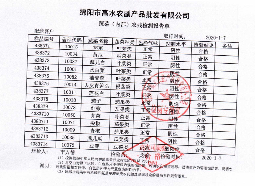 高农司农残检测报告单