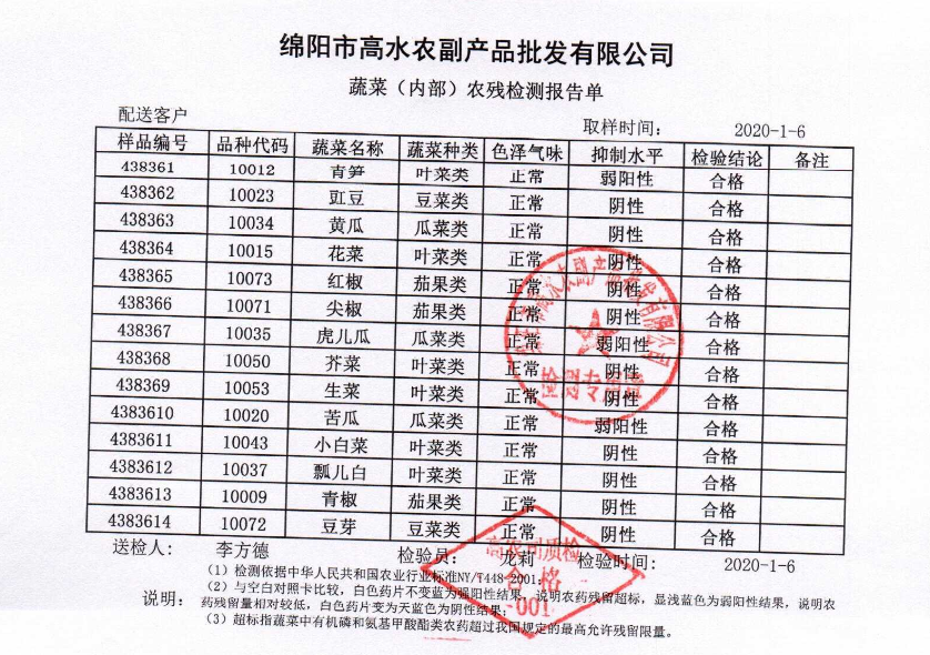 高农司农残检测报告单