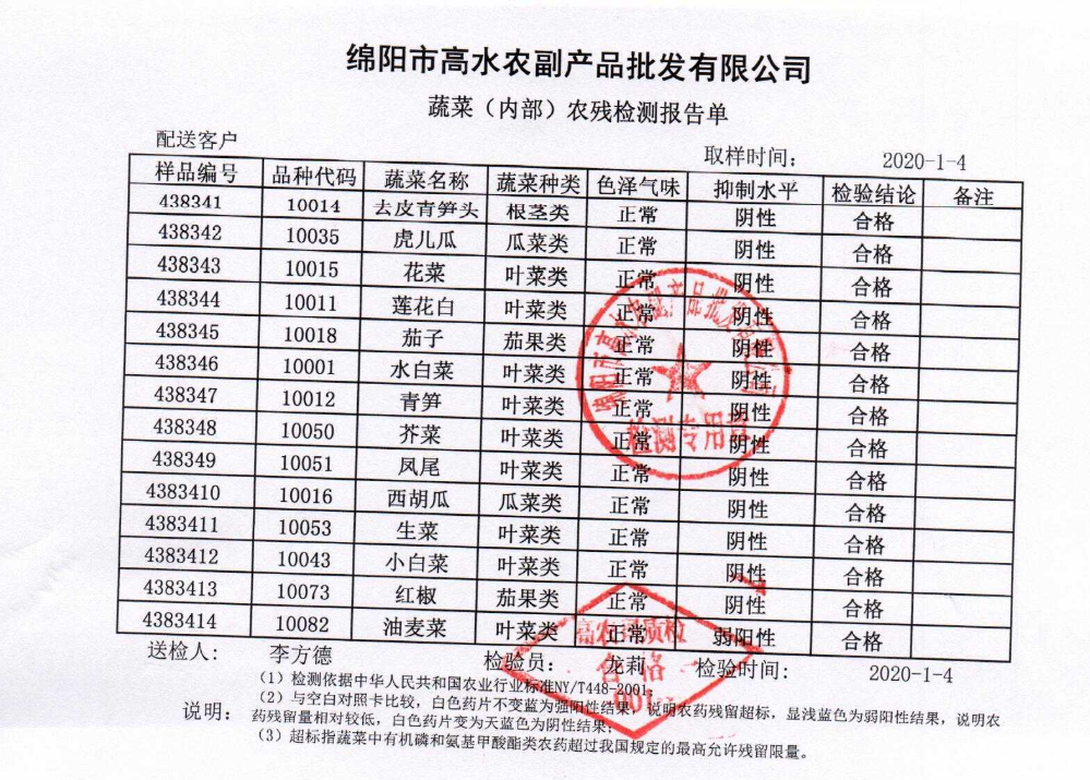 高农司农残检测报告单