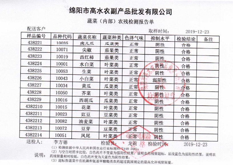 高农司农残检测报告单