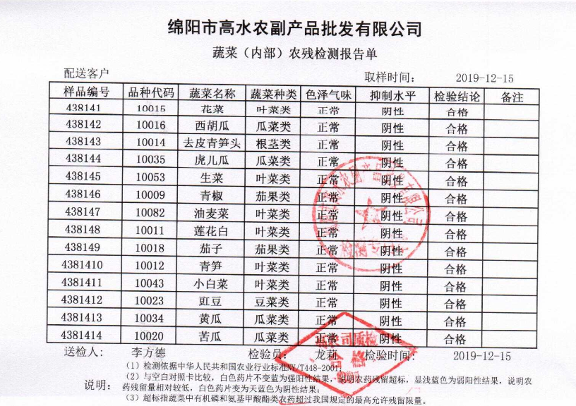高农司农残检测报告单