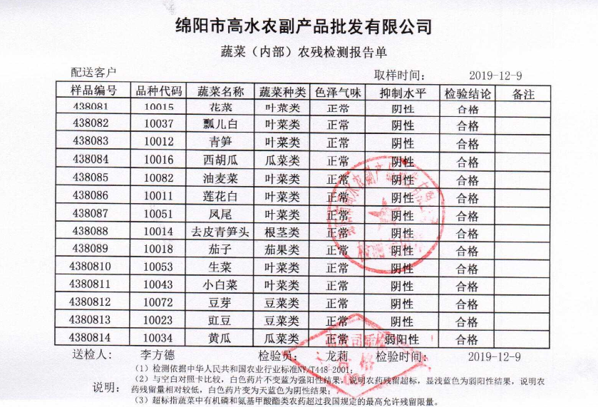 高农司农残检测报告单