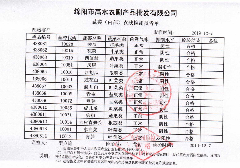 高农司农残检测报告单
