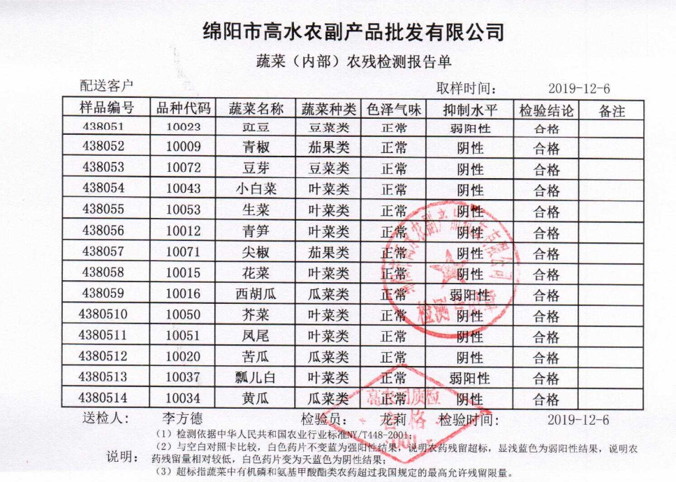 高农司农残检测报告单