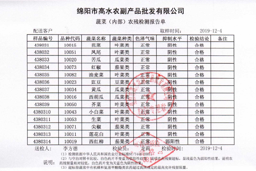 高农司农残检测报告单