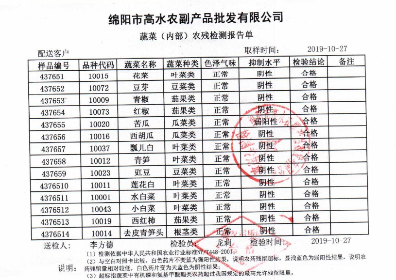 高农司农残检测报告单