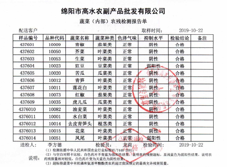 高农司农残检测报告单