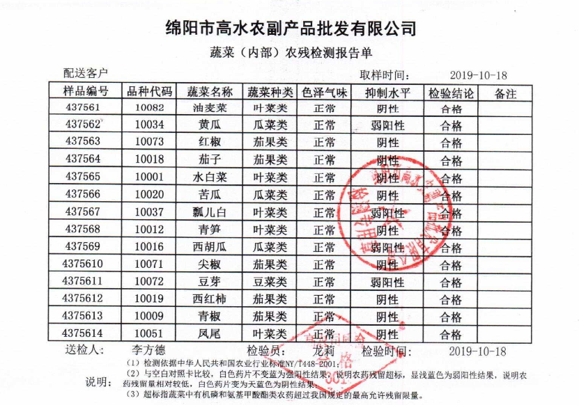 高农司农残检测报告单
