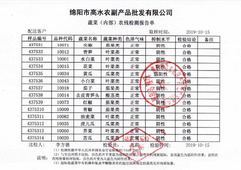 高农司农残检测报告单