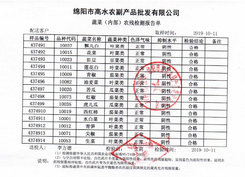 高农司农残检测报告单