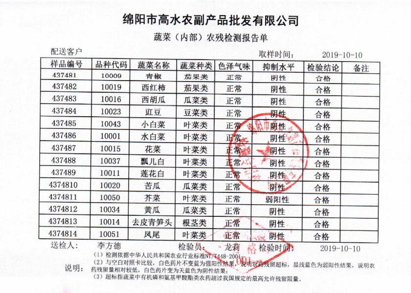 高农司农残检测报告单