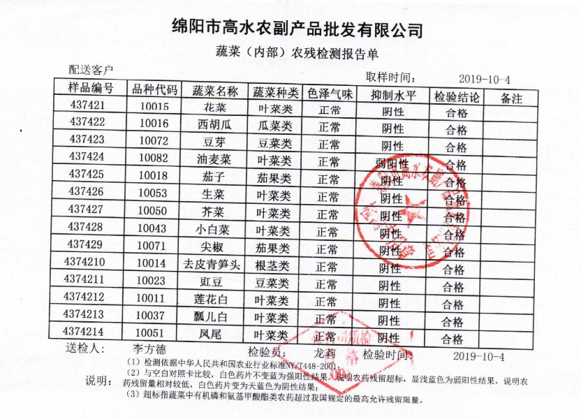 高农司农残检测报告单