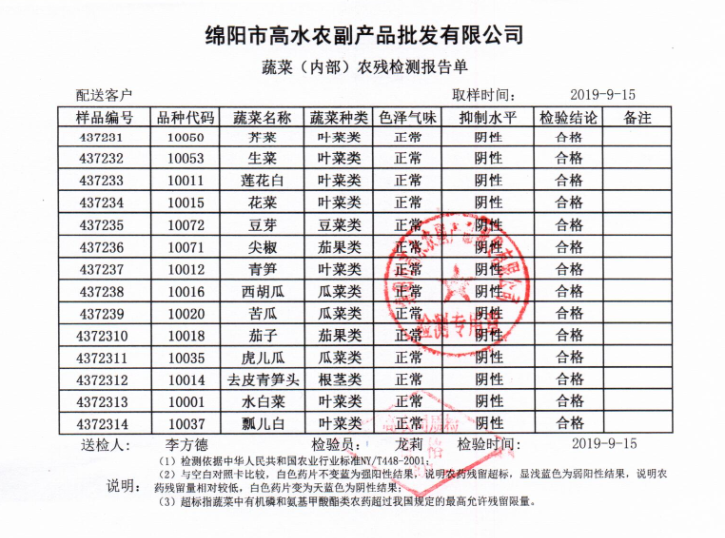 高农司农残检测报告单