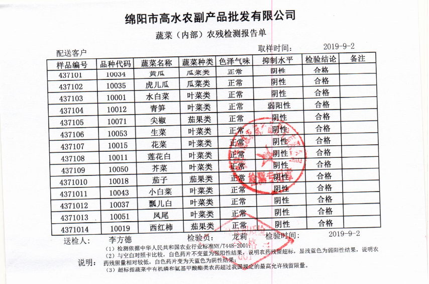 高农司农残检测报告单