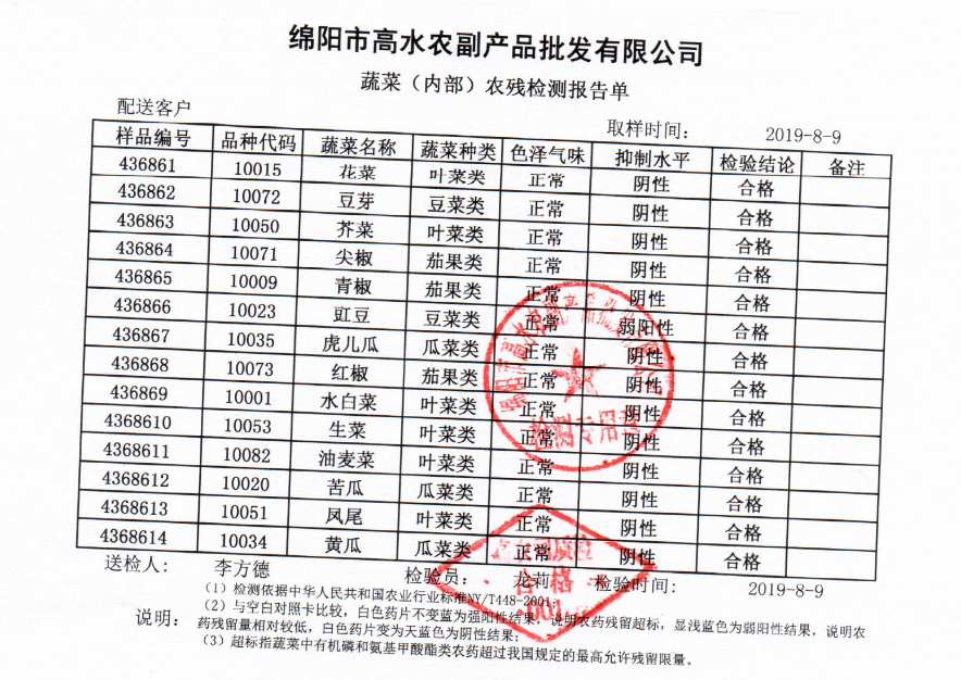 高农司农残检测报告单