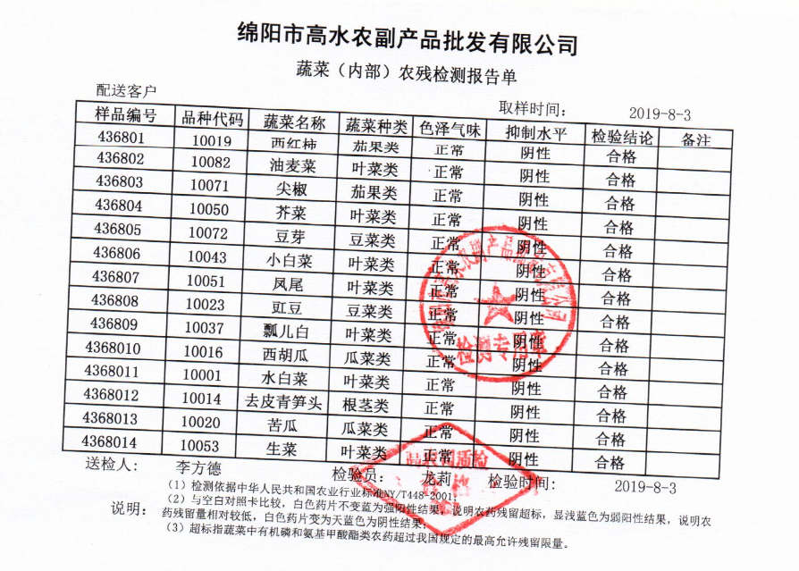 高农司农残检测报告单