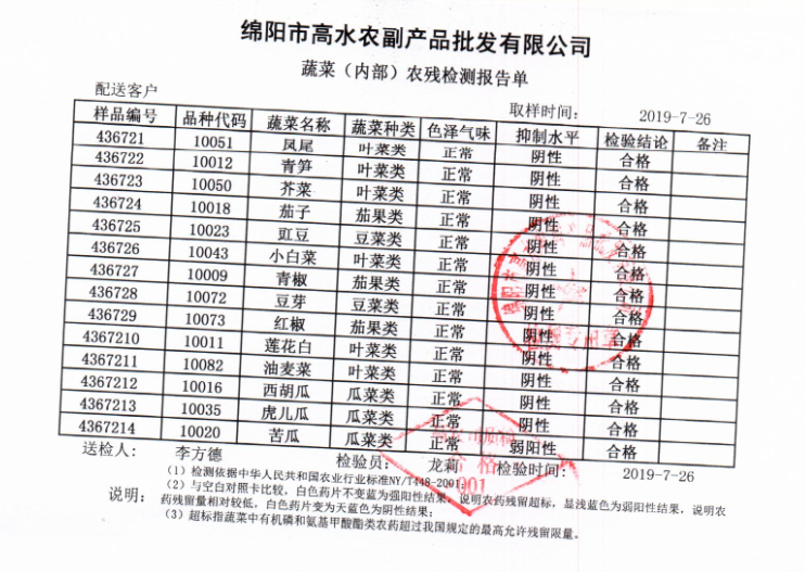 高农司农残检测报告单