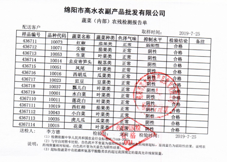 高农司农残检测报告单