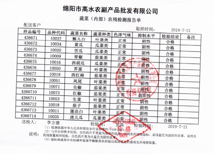 高农司农残检测报告单