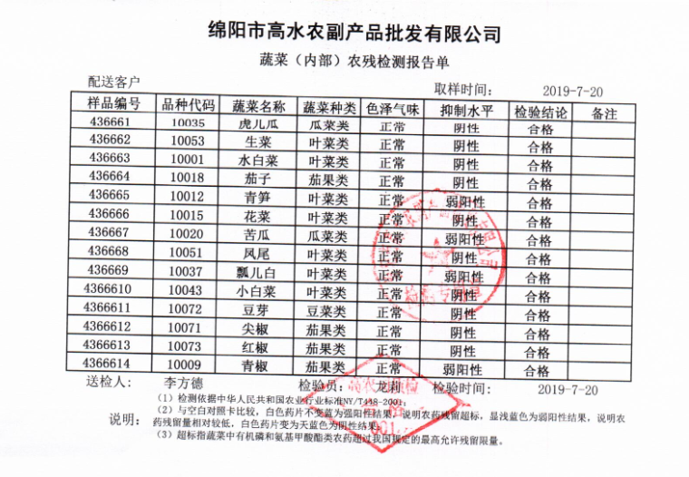 高农司农残检测报告单
