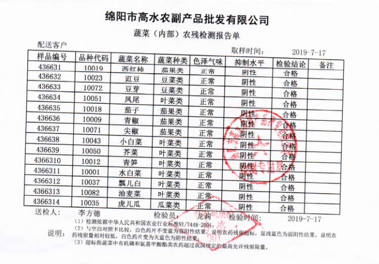 高农司农残检测报告单