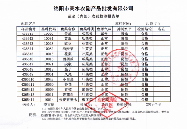 高农司农残检测报告单