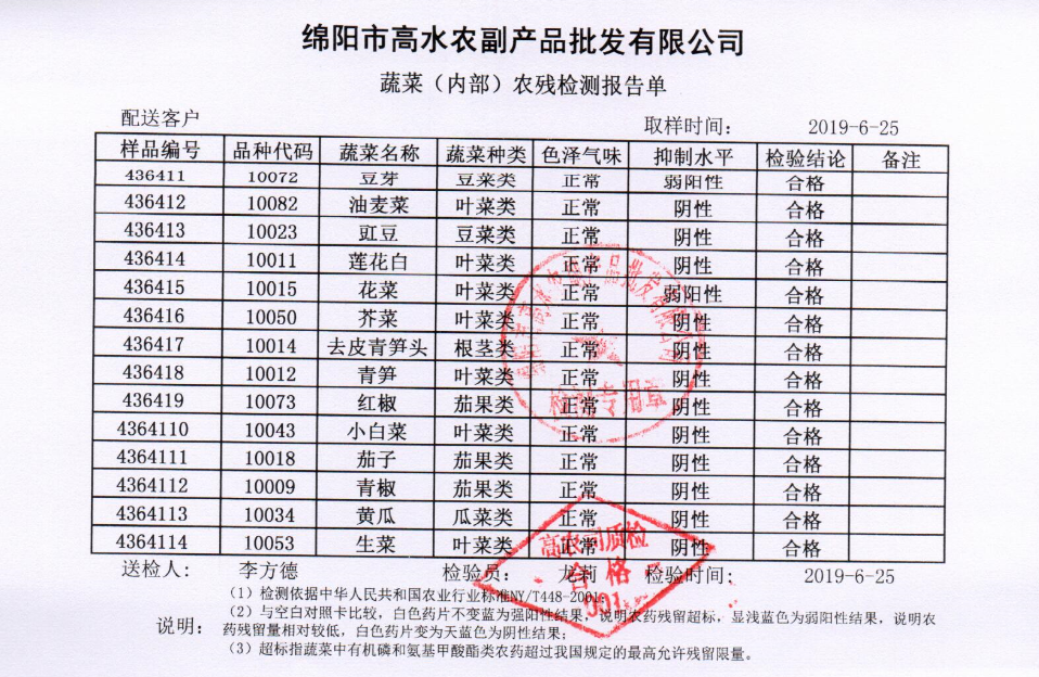 高农司农残检测报告单