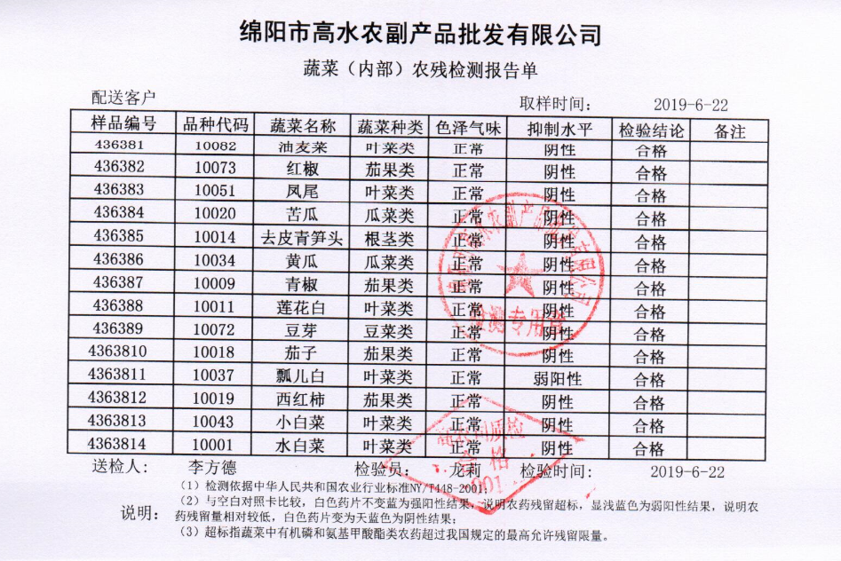 高农司农残检测报告单