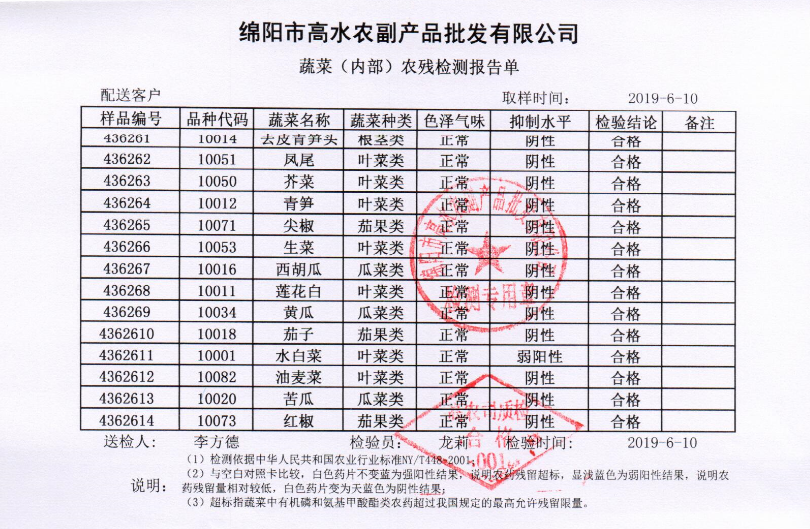 高农司农残检测报告单