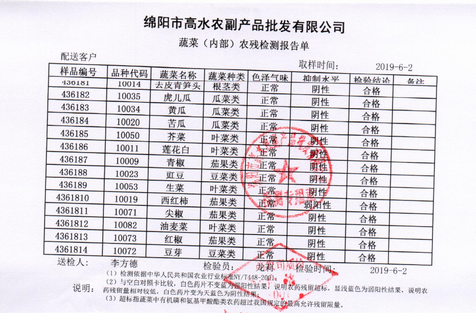 高农司农残检测报告单